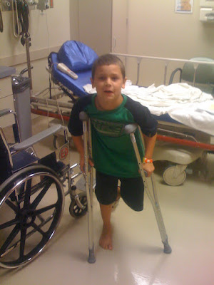 Thankfully a friend from church was there at the same time us. She was able to take the other 3 kids home for me so I could bring you to the hospital. Daddy and Pop Pop came to sit with you. Well, Pop Pop was there just to make you laugh, as usual. Turns out it was only BRUISED BADLY. You couldn't walk for like 2 weeks and you hated the crutches, but we survived.
